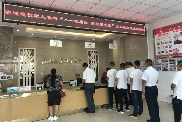 2019年8月1日,在第92个“八一”建军节之际,近30名什邡籍退转军人来到什邡单采血浆站捐献血浆,以实际行动践行爱党爱国爱民的初心,并以此向建军节献礼。