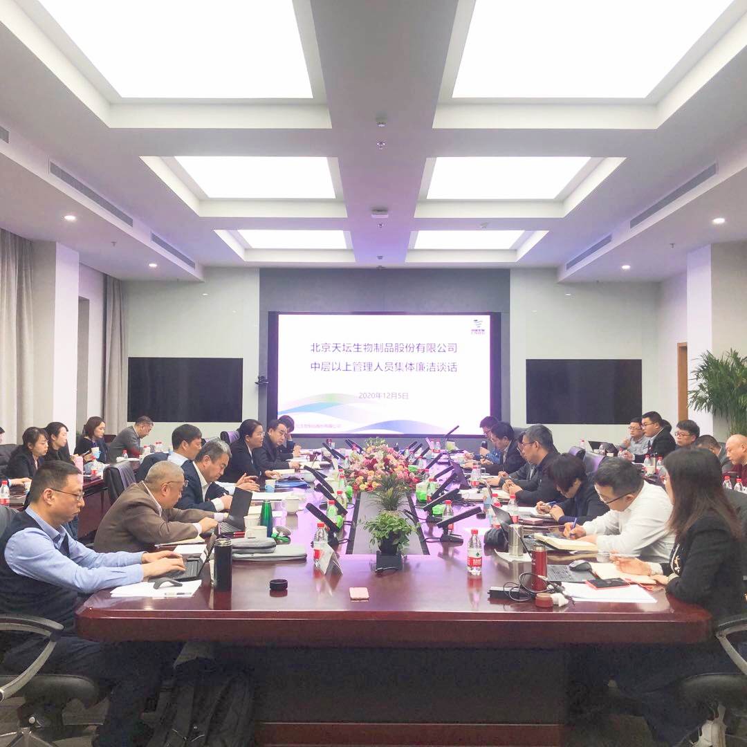 为深入推进党风廉政建设,营造清风正气的良好氛围,12月5日,天坛生物召开中层以上管理人员集体廉洁谈话。天坛生物党委班子成员及中层以上管理人员共计30余人出席会议,公司党委副书记、总经理付道兴主持会议,党委书记刘亚娜作集体廉洁谈话。