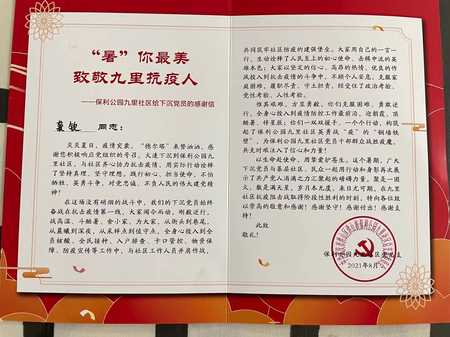 武汉血制党员干部闻令而动、主动响应,16名党员下沉一线协助社区做好全员核酸检测工作,做到最危险的地方有党组织、任务最重的地方有共产党员。抗疫战场上,武汉血制下沉党员志愿者,克服高温酷暑天气,坚守志愿者岗位,从清晨持续奋战到夜幕降临,为社区开展全员核酸检测提供了有力保障,得到了街道社区和检测群众的一致好评。