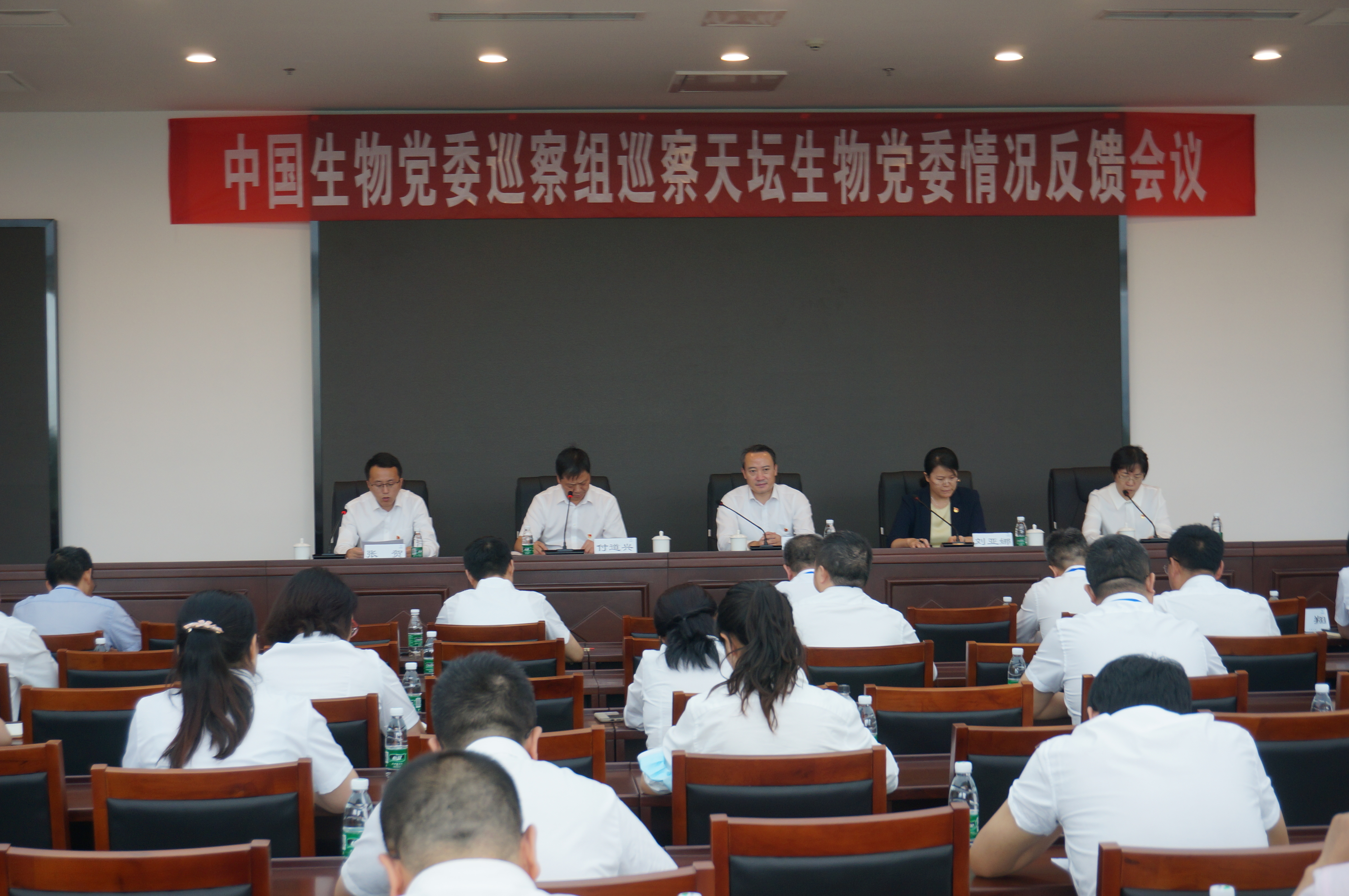 按照中国生物巡察工作统一部署,9月9日下午,中国生物党委第一巡察组巡察天坛生物党委情况反馈会议在成都召开,会议由天坛生物党委副书记、总经理付道兴主持。中国生物党委巡察工作领导小组副组长、纪委书记陈坤出席会议并讲话。