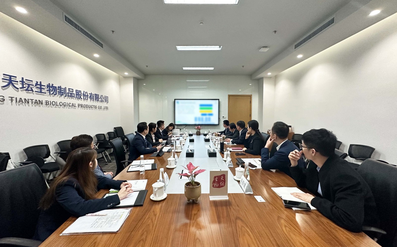3月6日,中诺生物技术有限公司(以下简称“中诺生物”)首席执行官师郡徽带领团队访问天坛生物,探讨业务合作。天坛生物总经理付道兴,党委书记、副总经理刘亚娜,副总经理兼财务总监张翼出席座谈交流会。