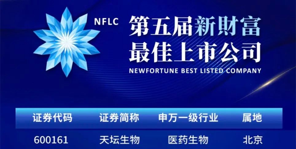 近日,第五届新财富最佳上市公司评选结果正式揭晓,天坛生物荣登榜单。获评上述奖项是新财富对公司高质量发展及高水平管理的充分肯定,显示出资本市场对天坛生物在公司治理、领导团队、专业能力、创新实践等方面的工作给予高度认可。